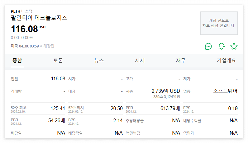 팔란티어 테크놀로지스 - 네이버페이 증권
