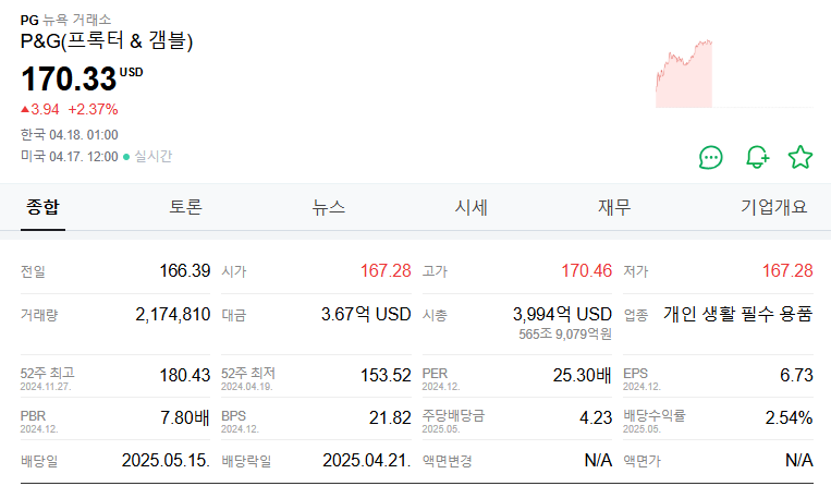 P&G(프록터 & 갬블) - 네이버페이 증권